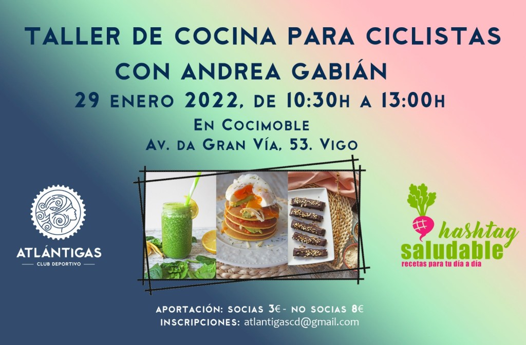 El pasado 29 de enero realizamos el primer taller de cocina para ciclistas en Atlántigas dirigido por Andrea Gabián. Andrea compartió diversas recetas prácticas, sencillas y sanas como tortitas con fruta, barritas energéticas muy útiles para nuestras salidas en bici y batido verde. Llevamos las recetas a la práctica y comprobamos lo deliciosas y fáciles que son de elaborar.